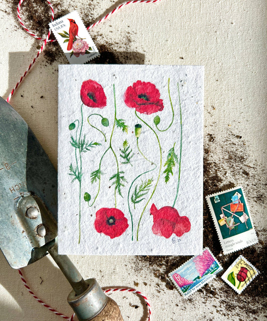 Poppy Fields Wildflower Mix Plantable Seed Card: Compostable Cello Sleeves, White