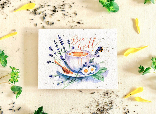 Bee Well Herb Mix Plantable Seed Card: Compostable Cello Sleeves, White