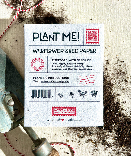 Poppy Fields Wildflower Mix Plantable Seed Card: Compostable Cello Sleeves, White