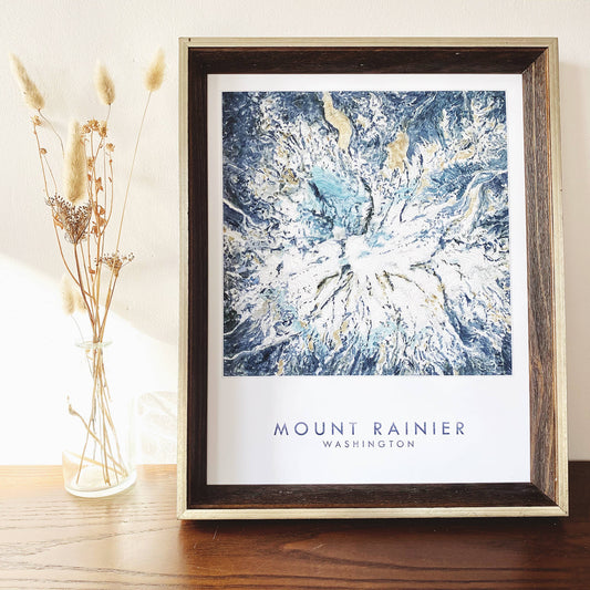 Mount Rainier TAHOMA Topo Watercolor Map ART PRINT: 8 x 10, Mount Rainier