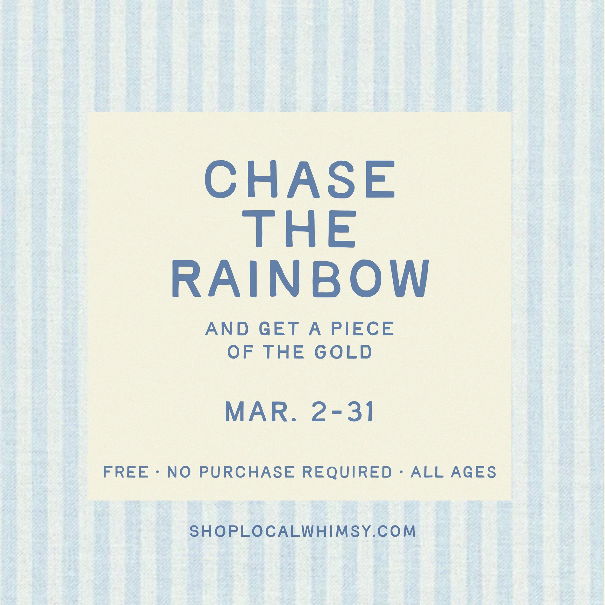 When you have a full rainbow (7 colors), head over to Local Whimsy and build a free bag charm. Plus, get a piece of the gold at the end of the rainbow!
