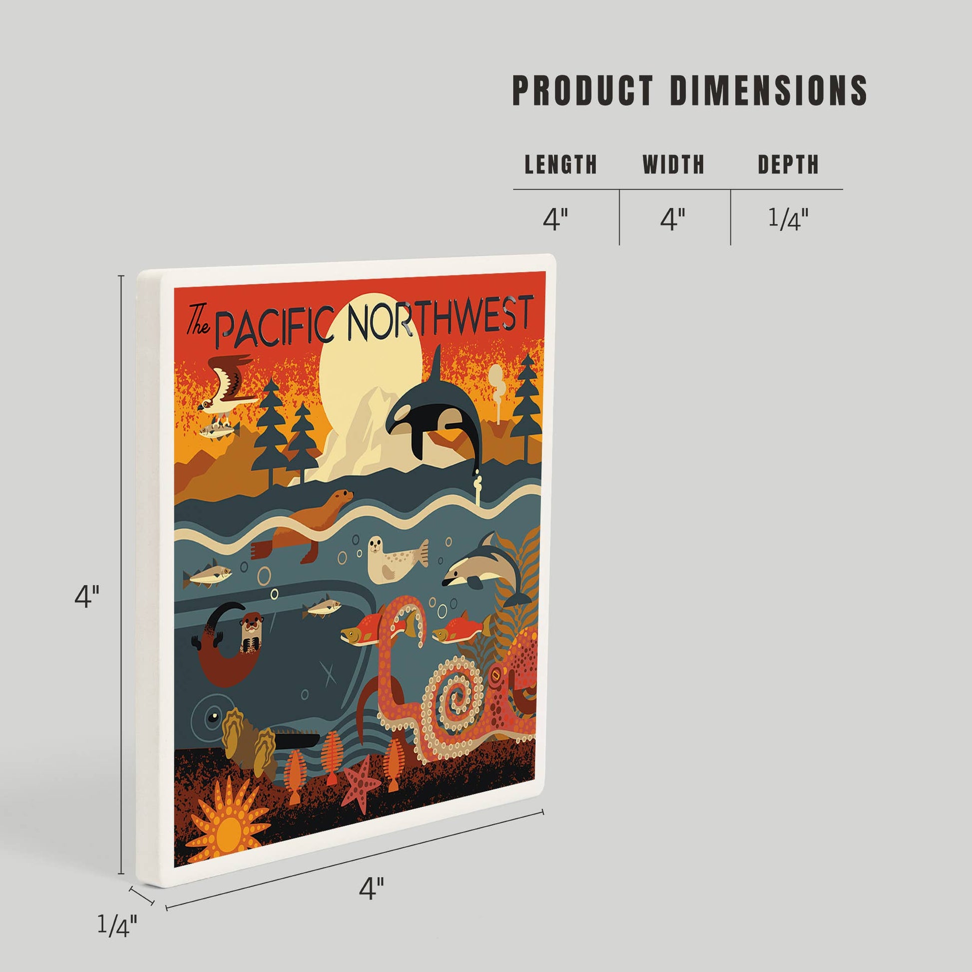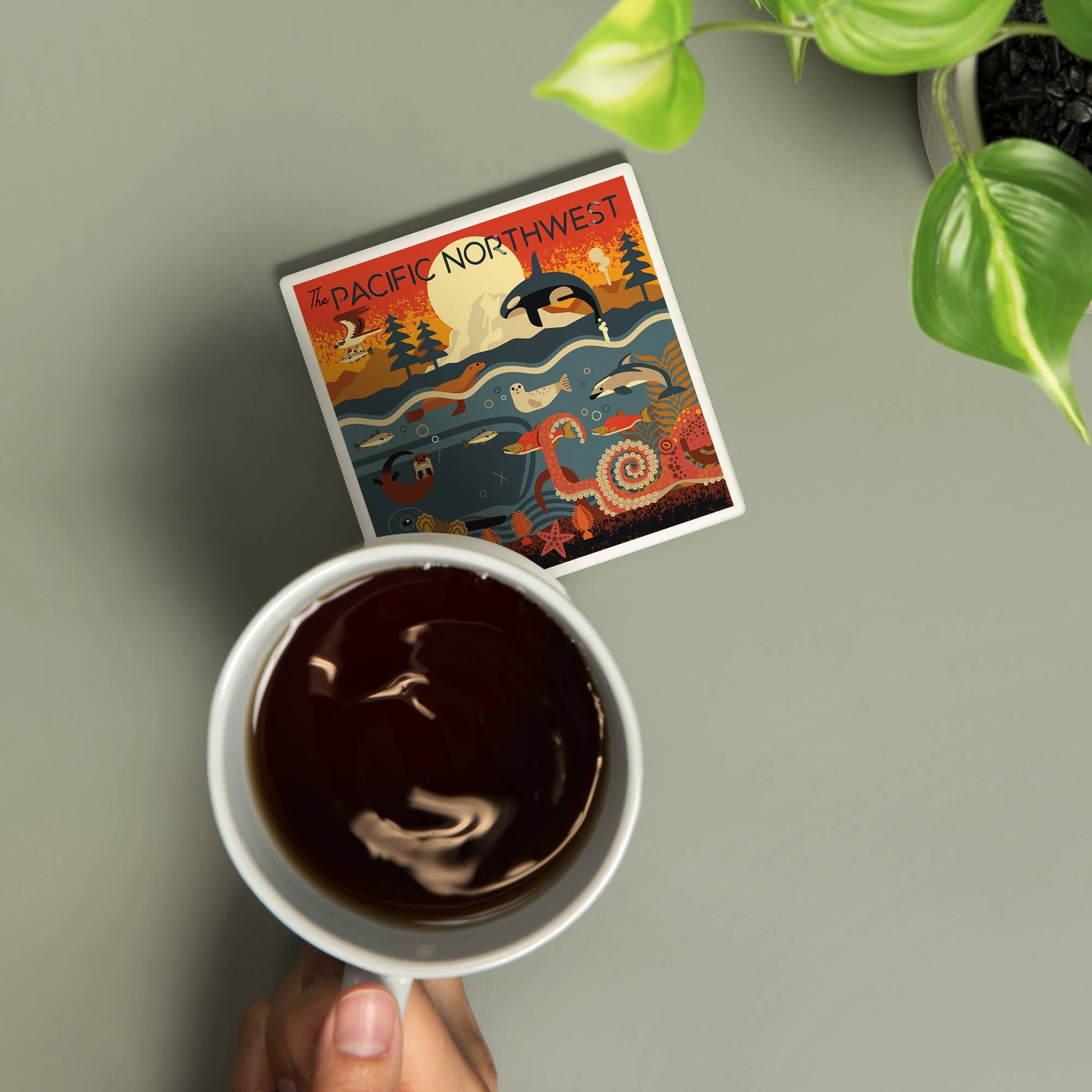 Ceramic Coaster Pacific Northwest Marine Animals Geometric