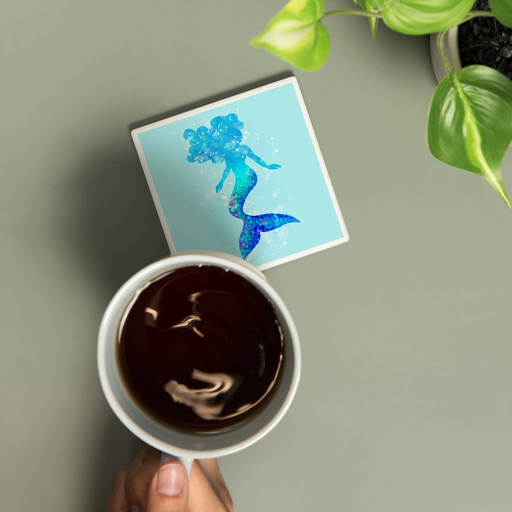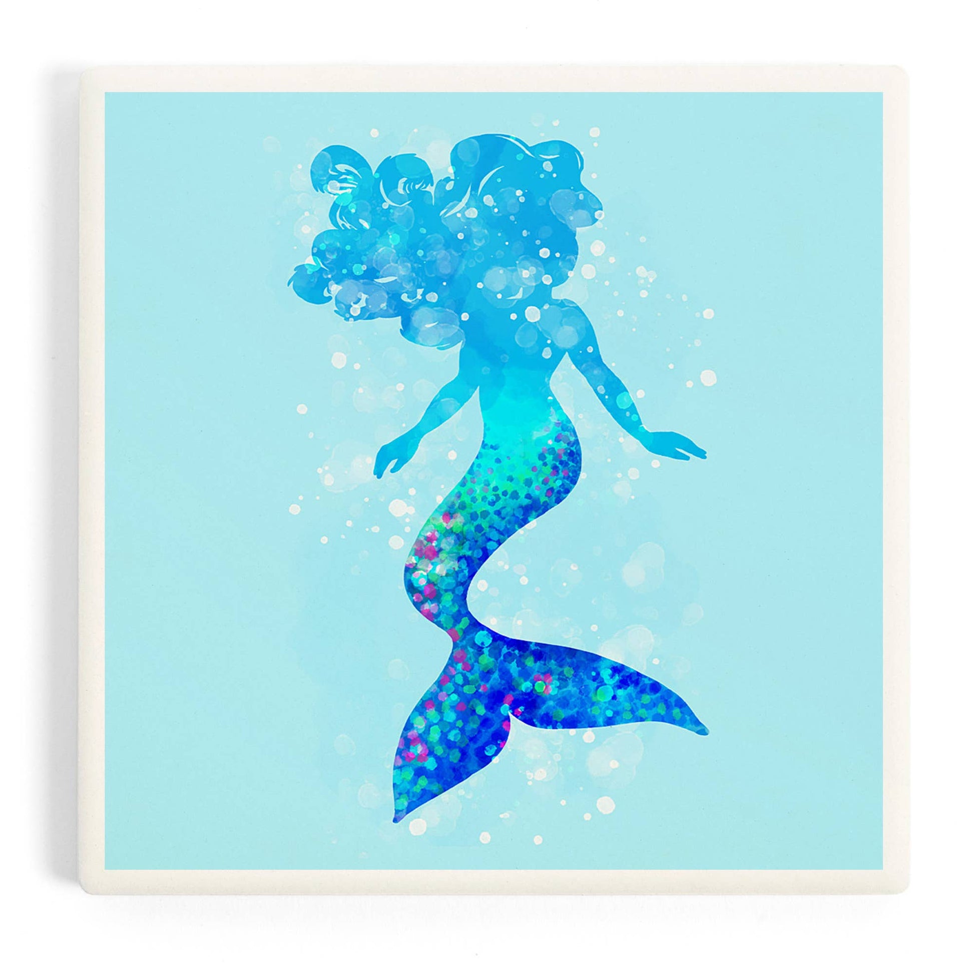 Silhouette Mermaid, Light Blue BackgrounCeramic Coaster d