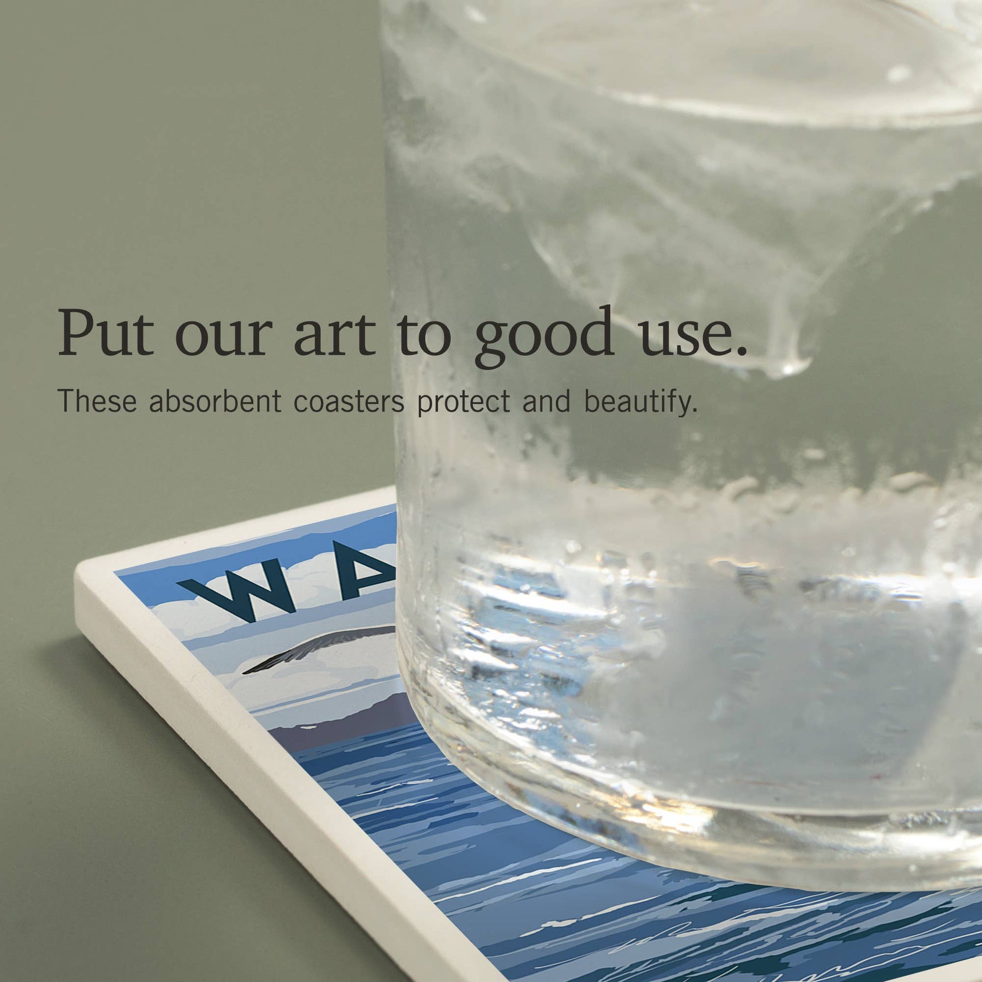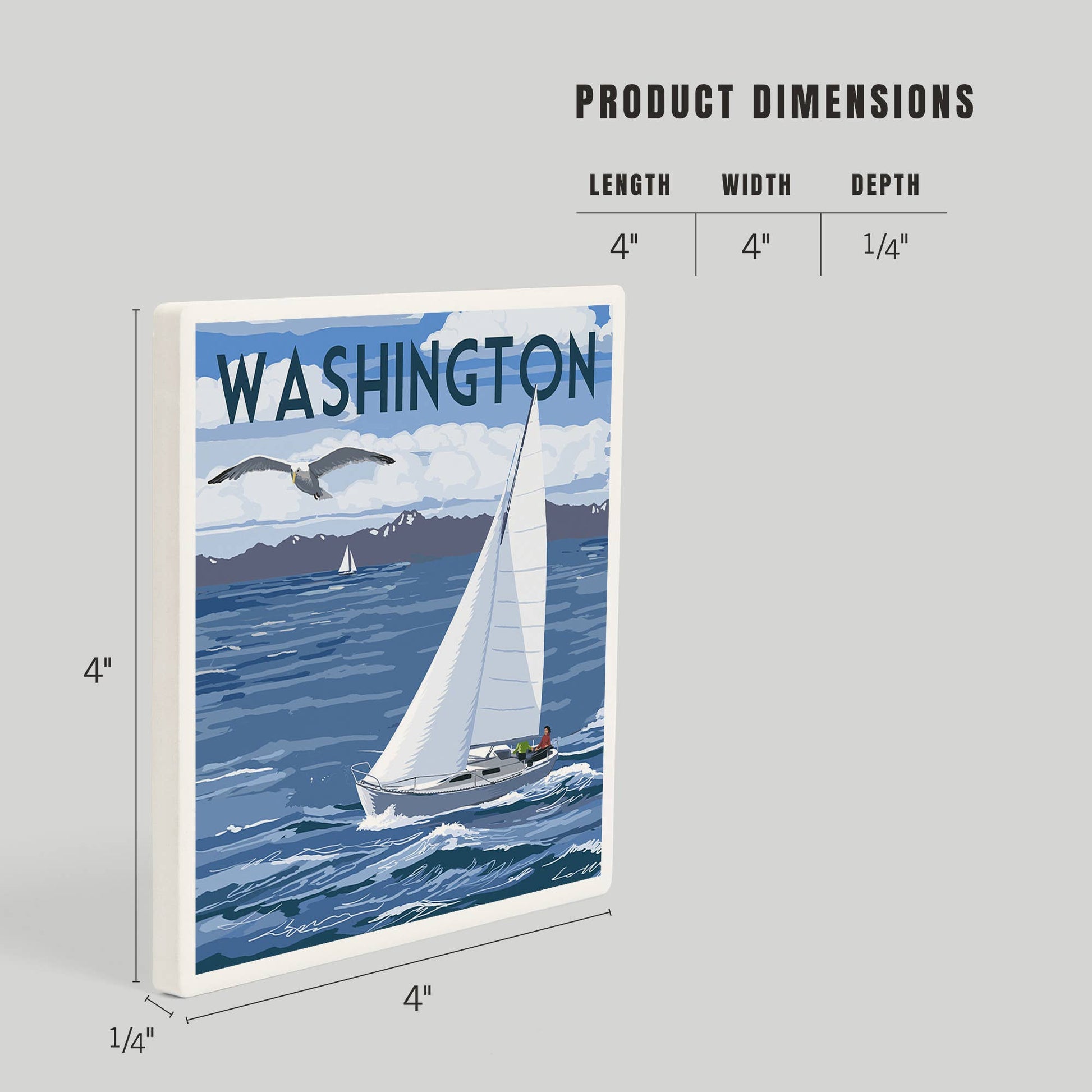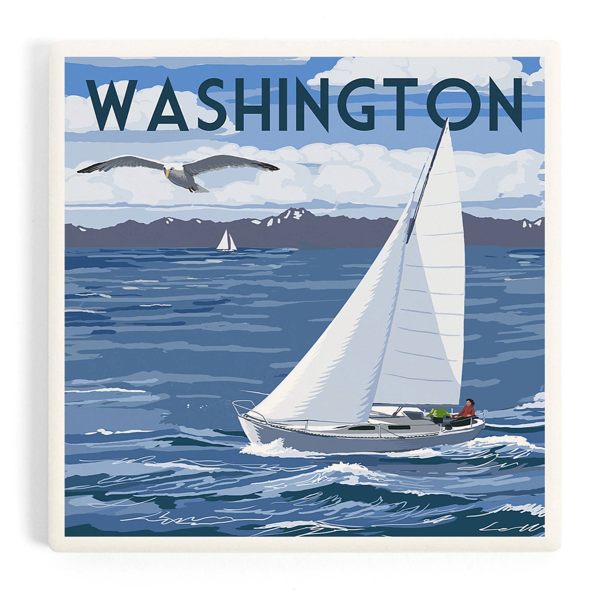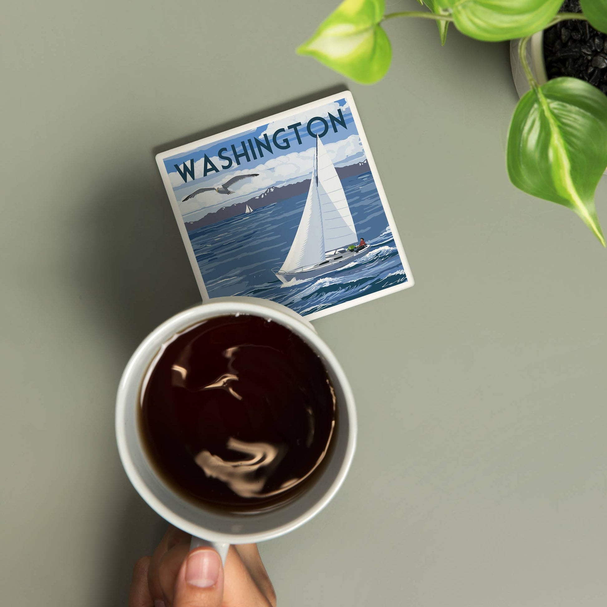 CERAMIC COASTER Washington, Sloop Sailboat & Lake
