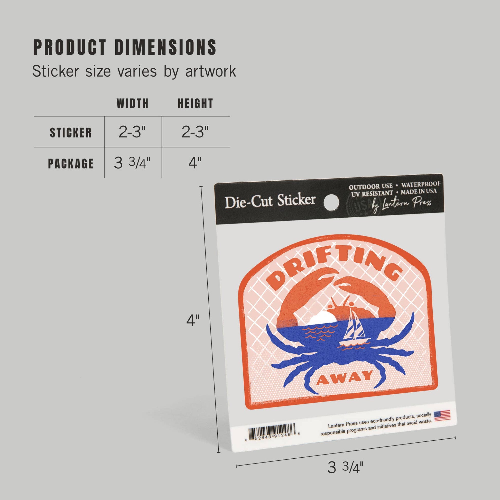 Small: 4" x 4" overall; sticker approx 2.5" x 2.5"