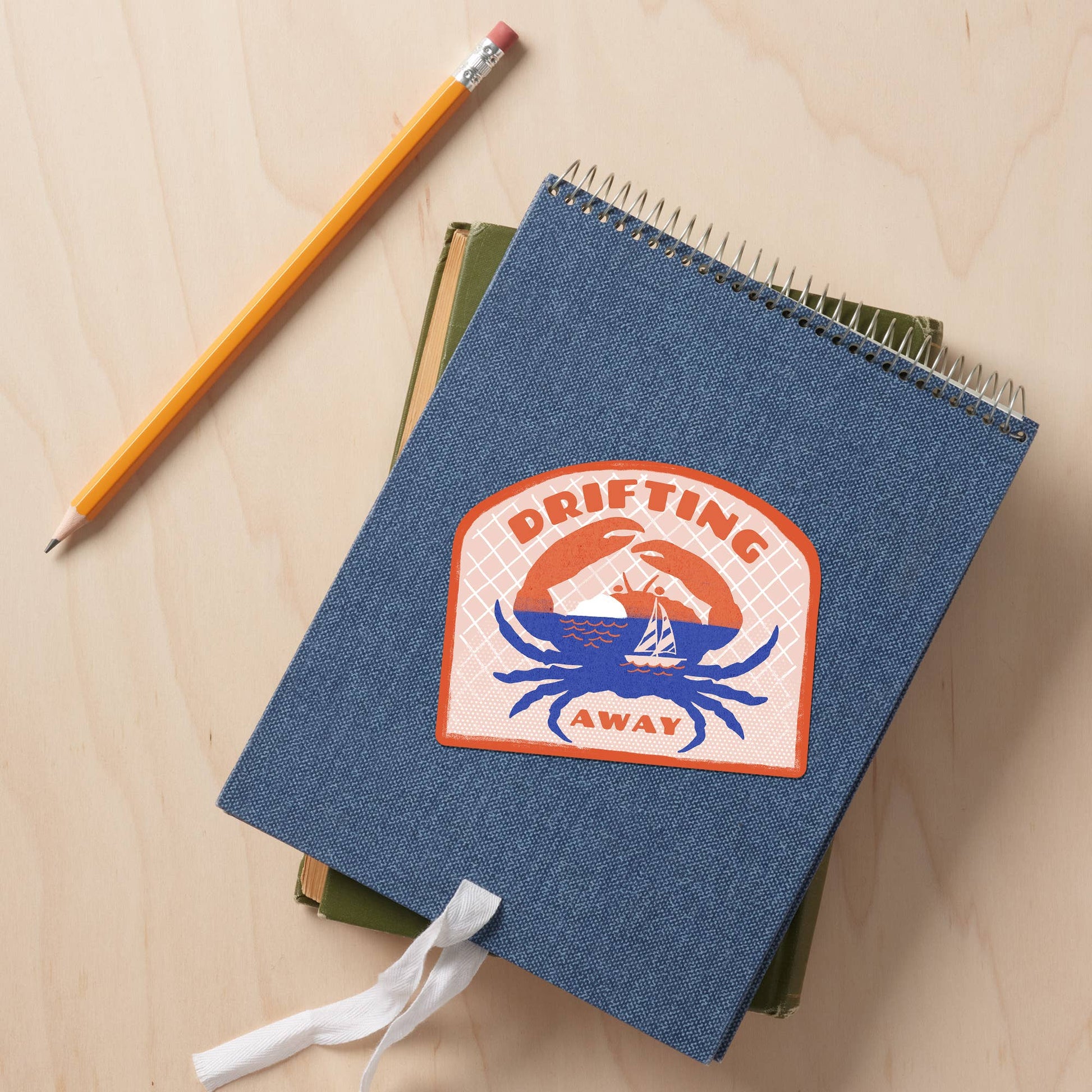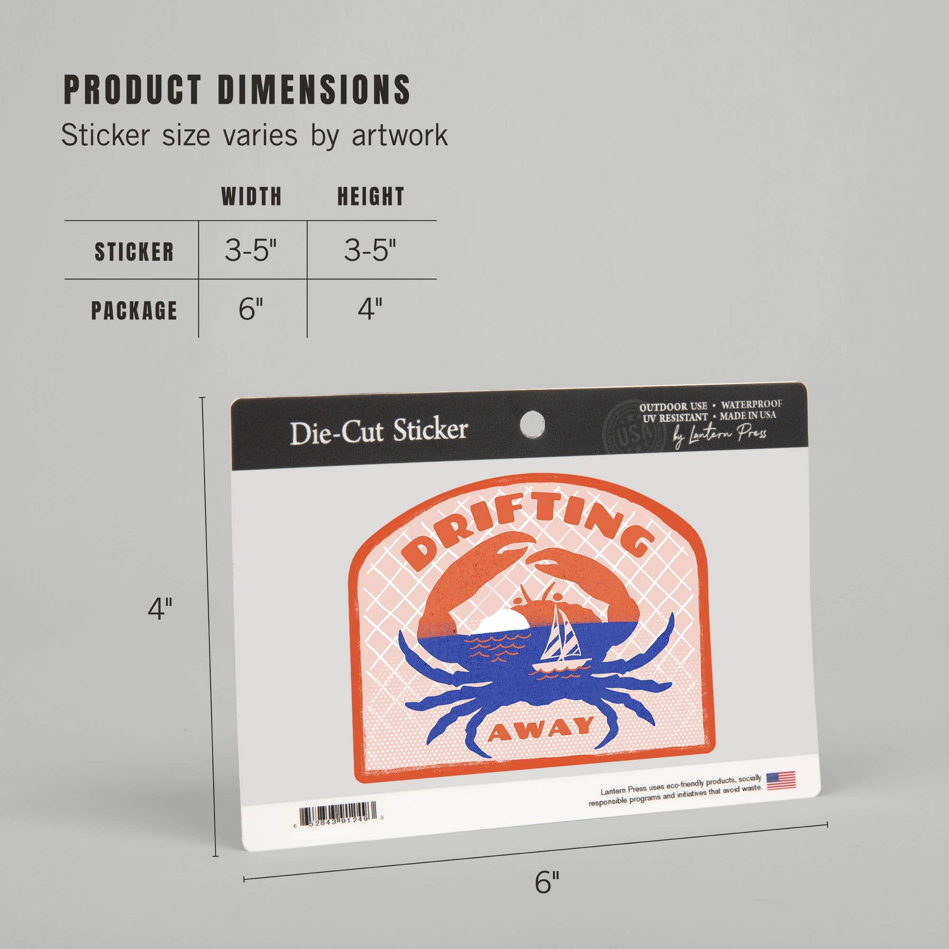 Large: 4" x 6" overall; sticker approx 3.5" x 3.5"