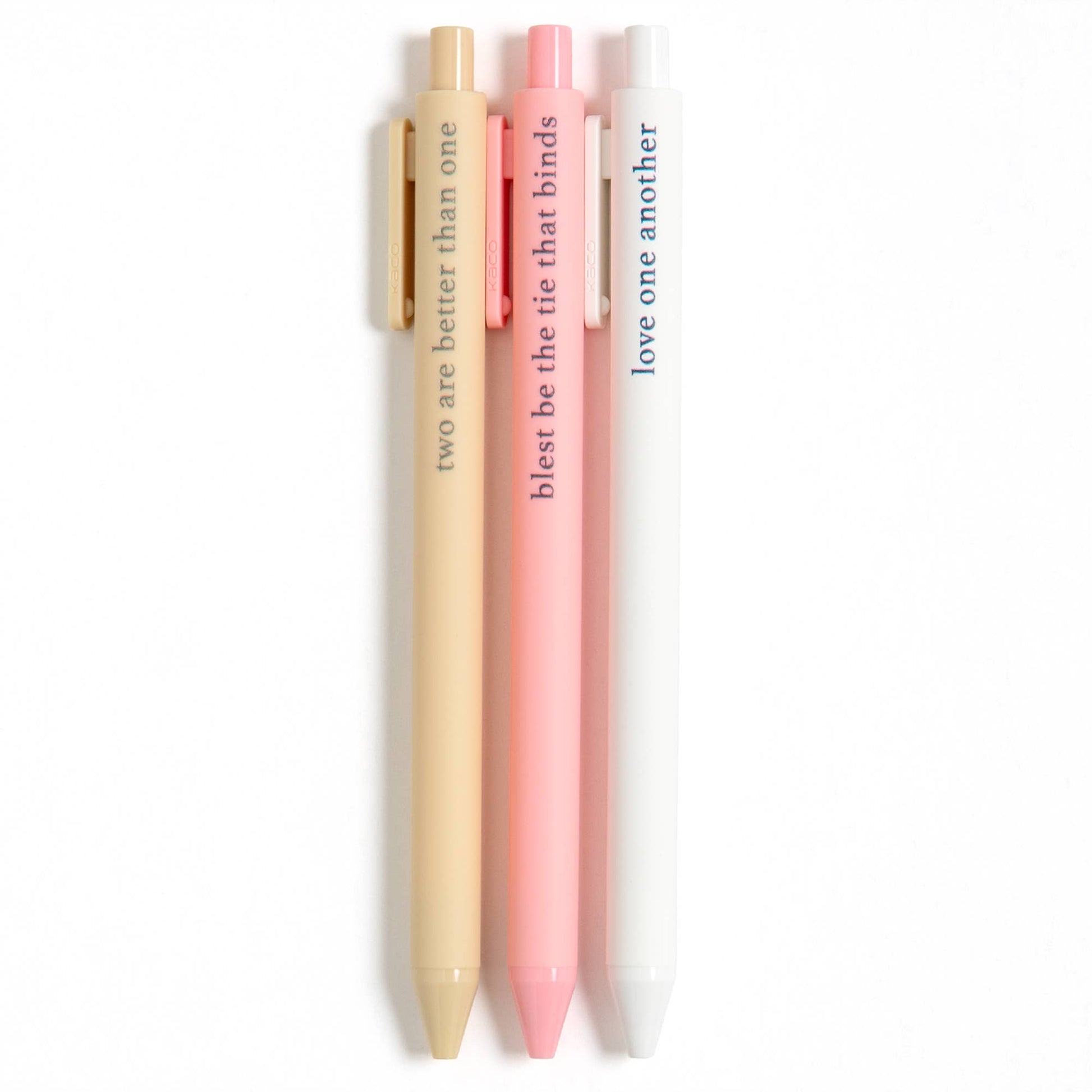 Celebrate the gift of friendship with our Friendship Pen Set! This charming collection of three ink pens features uplifting phrases from the Bible, beautifully capturing the joys of camaraderie through Ecclesiastes 4:9-12, Roma 12:5, and Colossians 3:14. Whether you’re taking notes, attending Bible study, sending heartfelt letters to long-distance friends, or journaling, our Friendship Pen Set is the perfect companion. Ideal for gifting on birthdays, Christmas, Easter, or just because, this set is a wonderful way to inspire and nurture fellowship in the Lord.