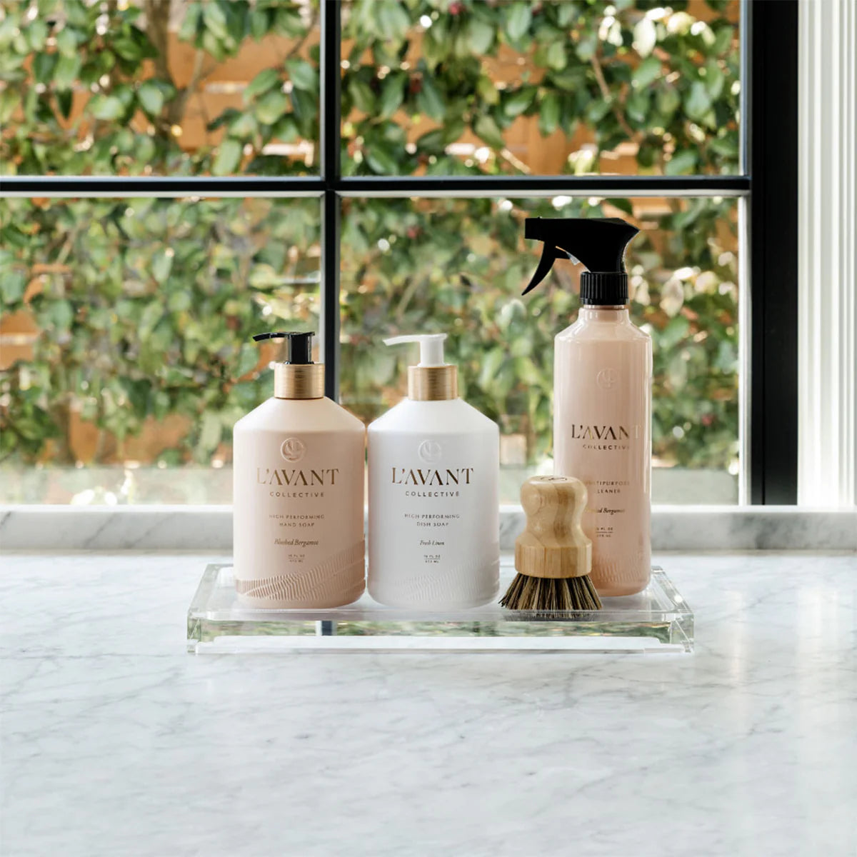 This bottle was intentionally designed to be reused. Easily refill it using L'AVANT Collective High Performing Dish Soap Refill. We apologize in advance if you want to do dishes more often to inhale the scent and admire the bottle - we don't blame you!