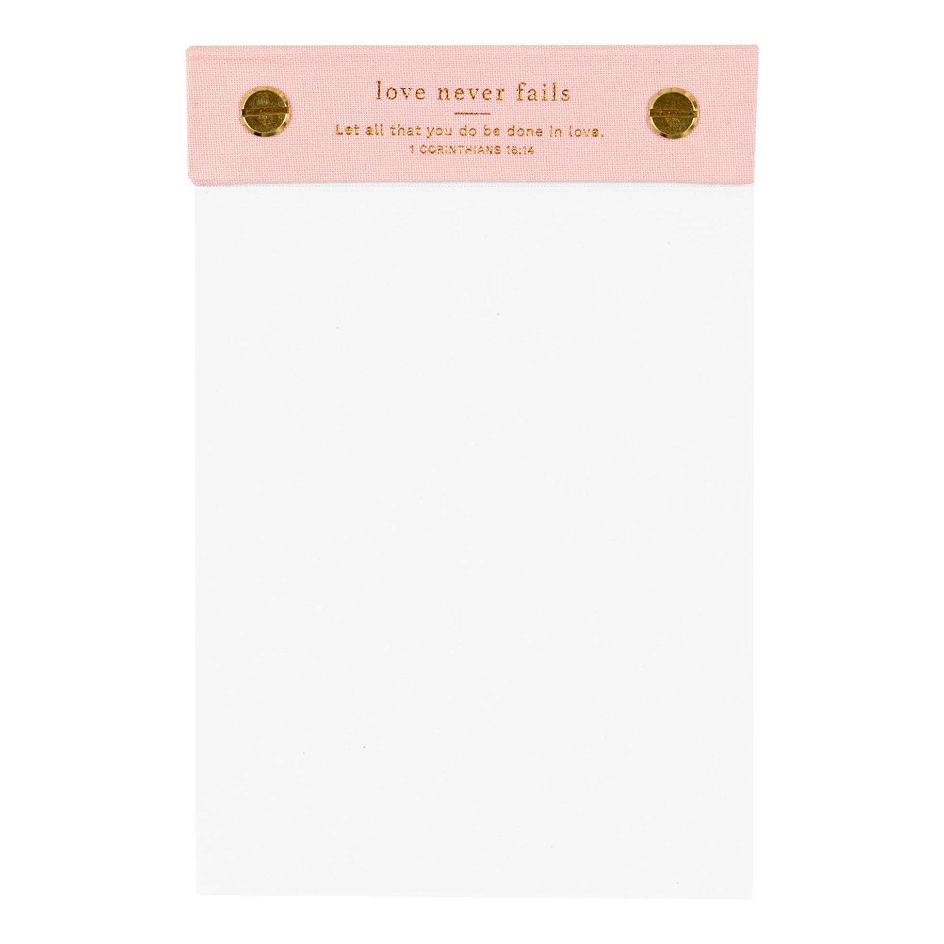Introducing our Love Never Fails Desktop Notepad, beautifully adorned with gold accents. This elegant notepad is perfect for jotting down notes, reminders, or i piring thoughts throughout your day. Its charming design features a verse from 1 Corinthia 16:14. Our Love Never Fails Notepad serves as a daily reminder of the enduring power of love, making it a delightful addition to any workspace. Whether for personal use or as a thoughtful gift, this notepad is sure to i pire and uplift!
