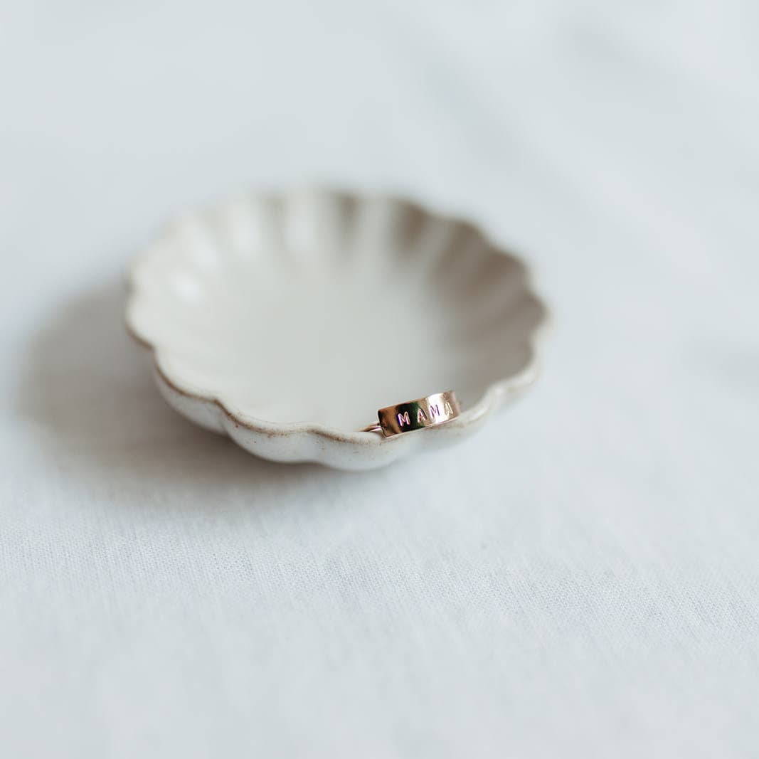 Celebrate motherhood with the hand-stamped Mama Bar Ring. The 1mm band width makes it perfect for stacking with other rings or wearing alone for a minimalist look. Crafted from hypoallergenic, waterproof, and tarnish-resistant materials, this ring is ideal for everyday wear and makes a thoughtful gift for Mother’s Day or new baby celebrations.