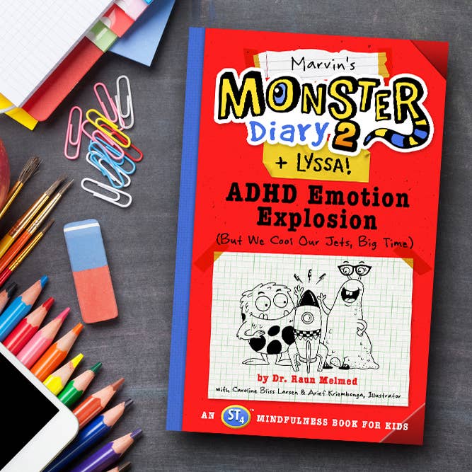 In the same humorous spirit of Diary of a Wimpy Kid comes Marvin's Monster Diary: ADHD Emotion Explosion Using the "monstercam" and "ST4" techniques developed by Dr. Raun Melmed of the Melmed Center in Arizona, Marvin teaches kids how to be mindful, observe their surroundings, and take time to think about their actions. Marvin's hilarious doodles chronicle his delightful adventures in a funny, relatable way. It's the series on ADHD that kids will actually want to read!