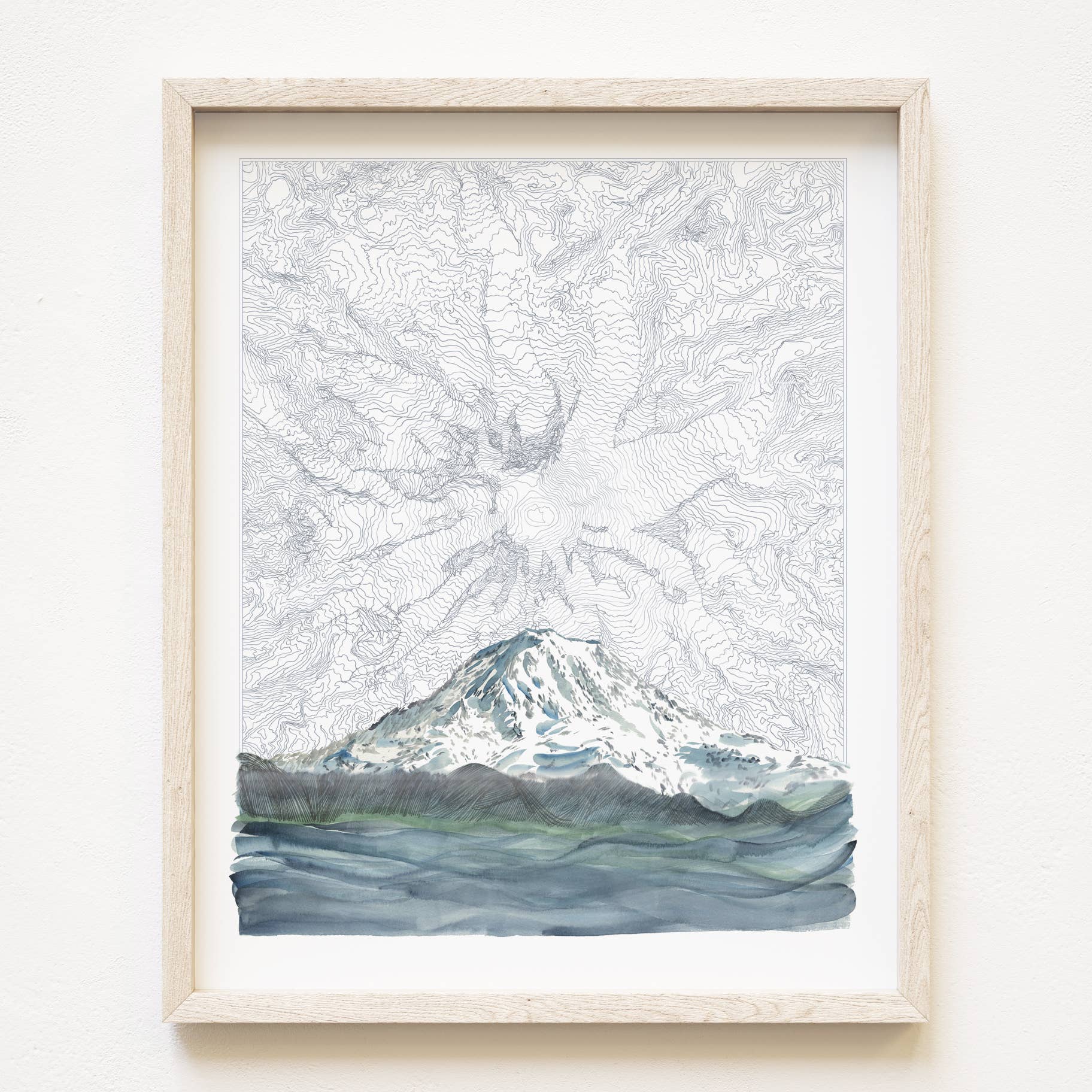 TAHOMA, Mount Rainier, Washington Hand-drawn Topographic Map merged with my Painting of the mountain - Show some local love for our beloved mountain!