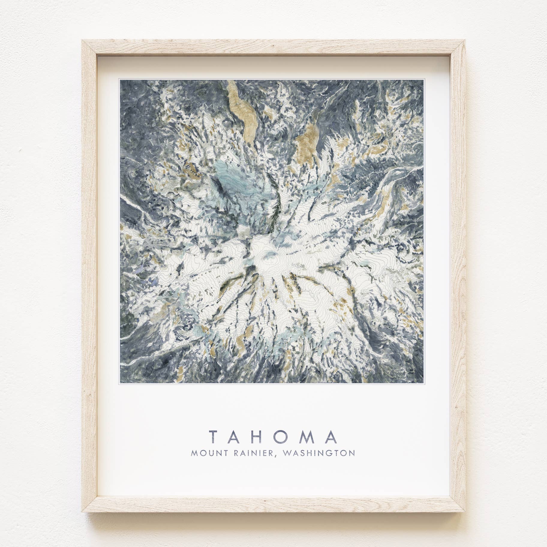 TAHOMA, Mount Rainier, Washington Topographical Watercolor Map Art Prints - Show some local love for your favorite adventure spot!