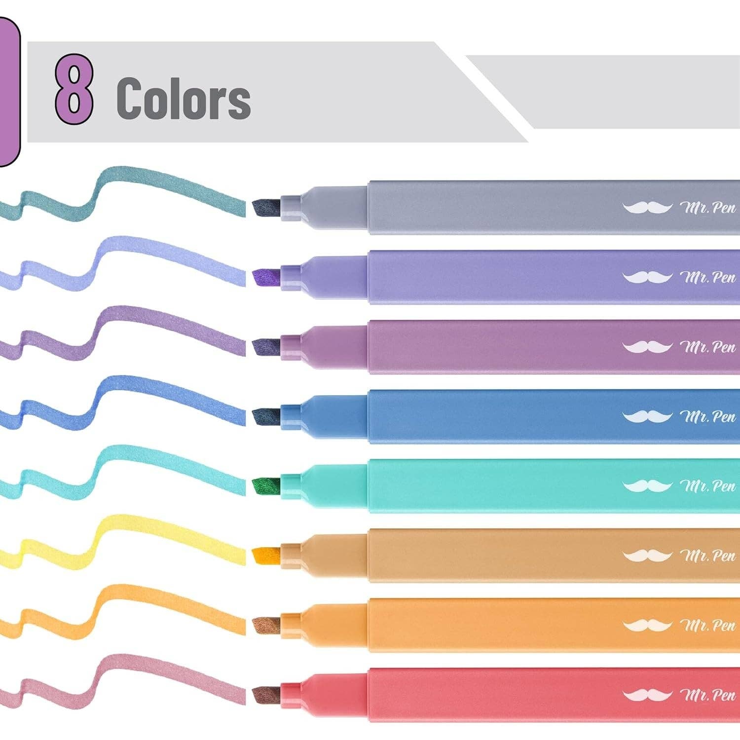 Mr. Pen- Aesthetic Highlighters, 8 Pcs, Chisel Tip, Muted Pastel Color, No Bleed