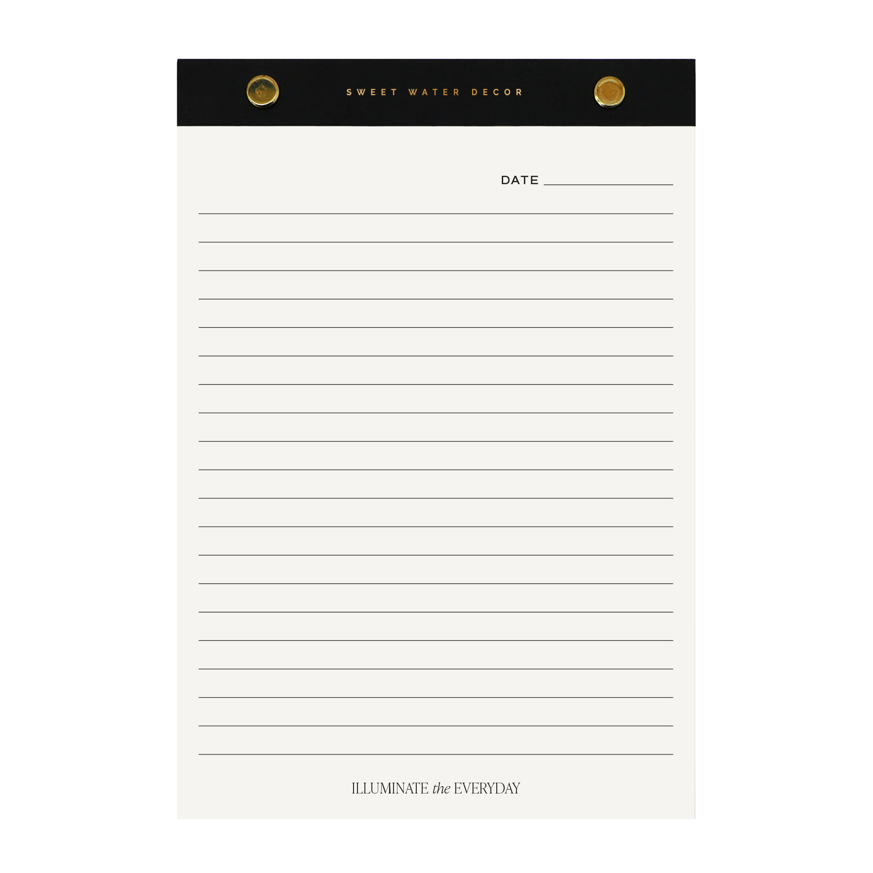 Add a timeless staple to your stationery collection with our Lined Notepad featuring chic gold rivet accents. Perfect for to-do lists, notes, and reminders, this compact, everyday essential offers a clean, functional design with an elevated touch. A versatile, giftable piece customers will reach for year-round. Style it alongside our other best-selling journals, pens, and desk accessories for an easy, cohesive display.