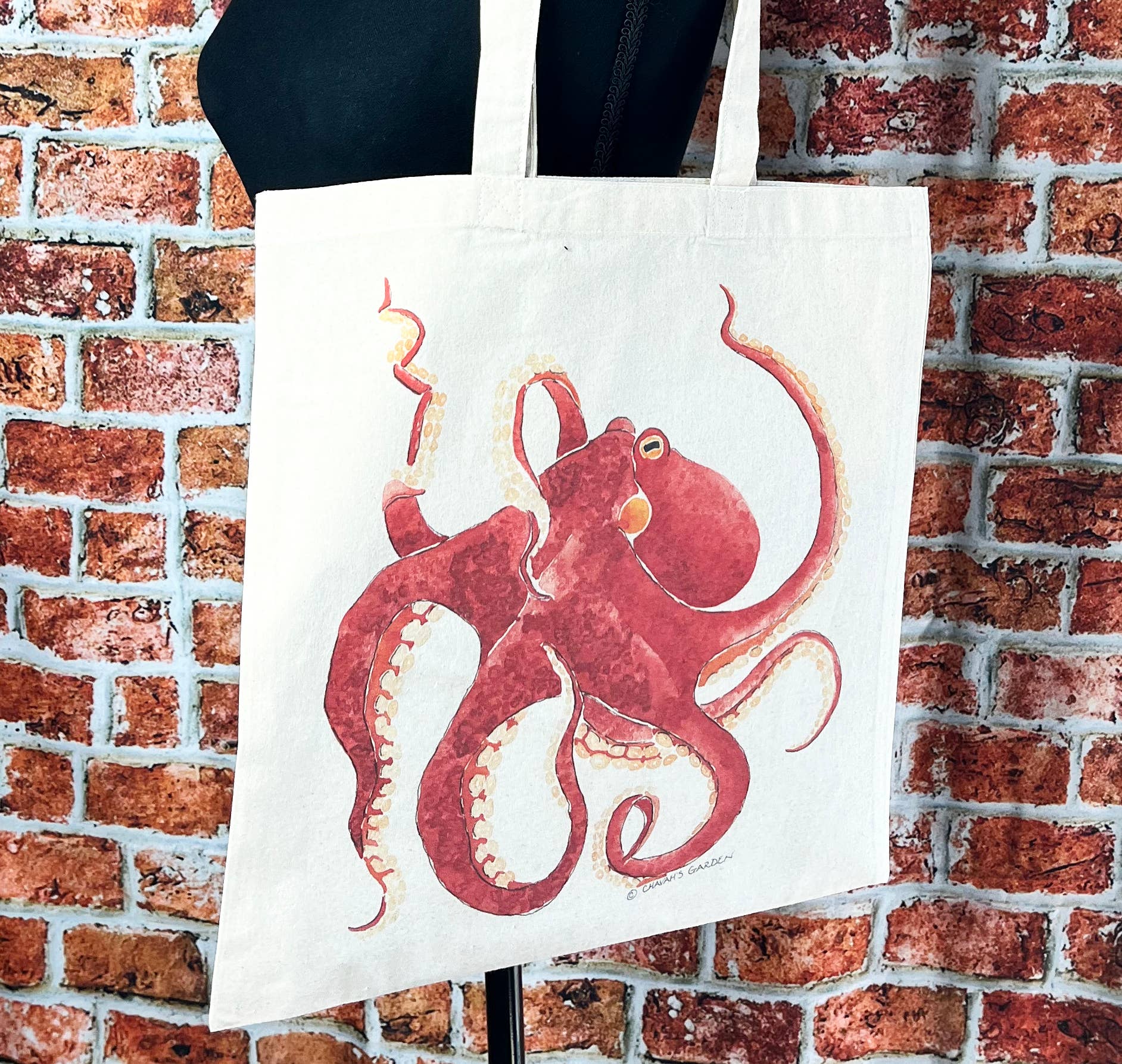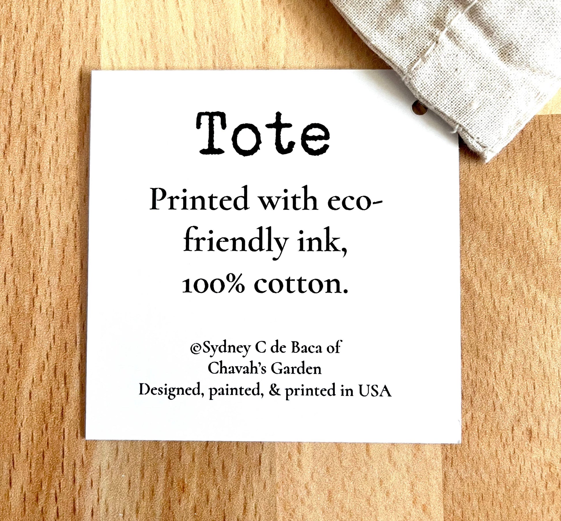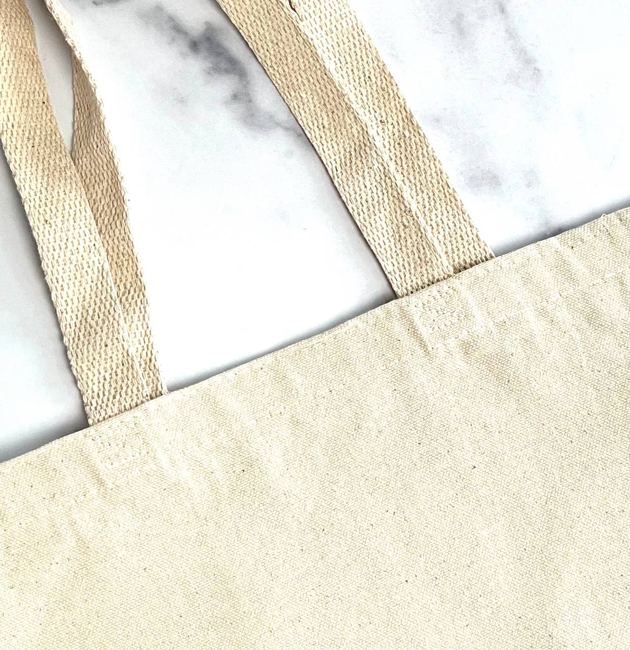 These new tote bags are 100% cotton, slightly heavier than my previous bags but still not too heavy. The handles are a soft thick woven cotton. Colorfast and washable.