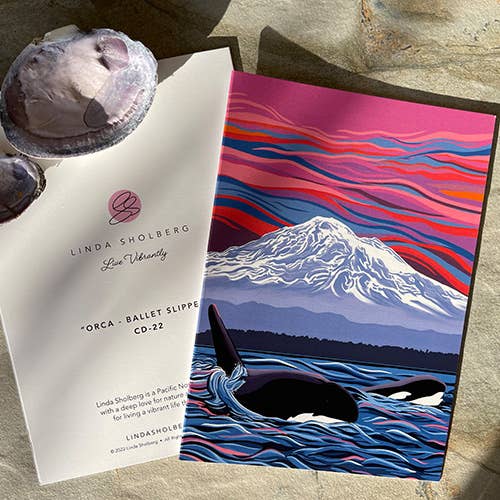 Orca - Ballet Slipper - Mom/Calf Swimming GREETING Card (5X7 ): A7