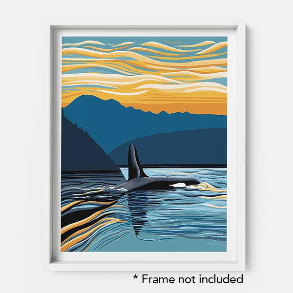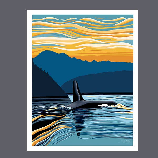 Orca - Evening Swim - Puget Sound Art Print 8x10