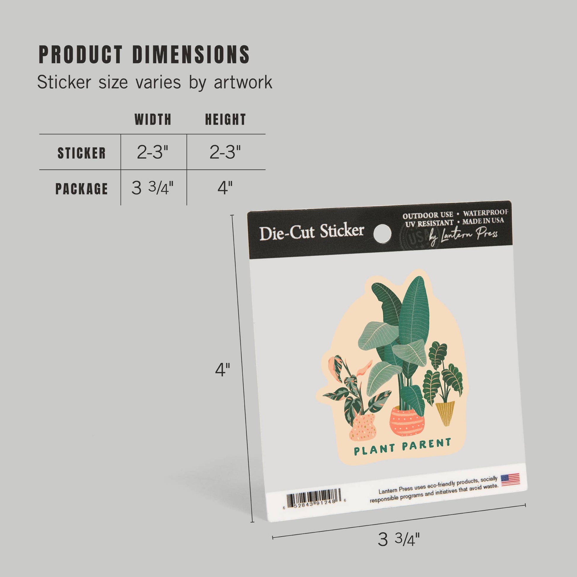 Small: 4" x 4" overall; sticker approx 2.5" x 2.5"
