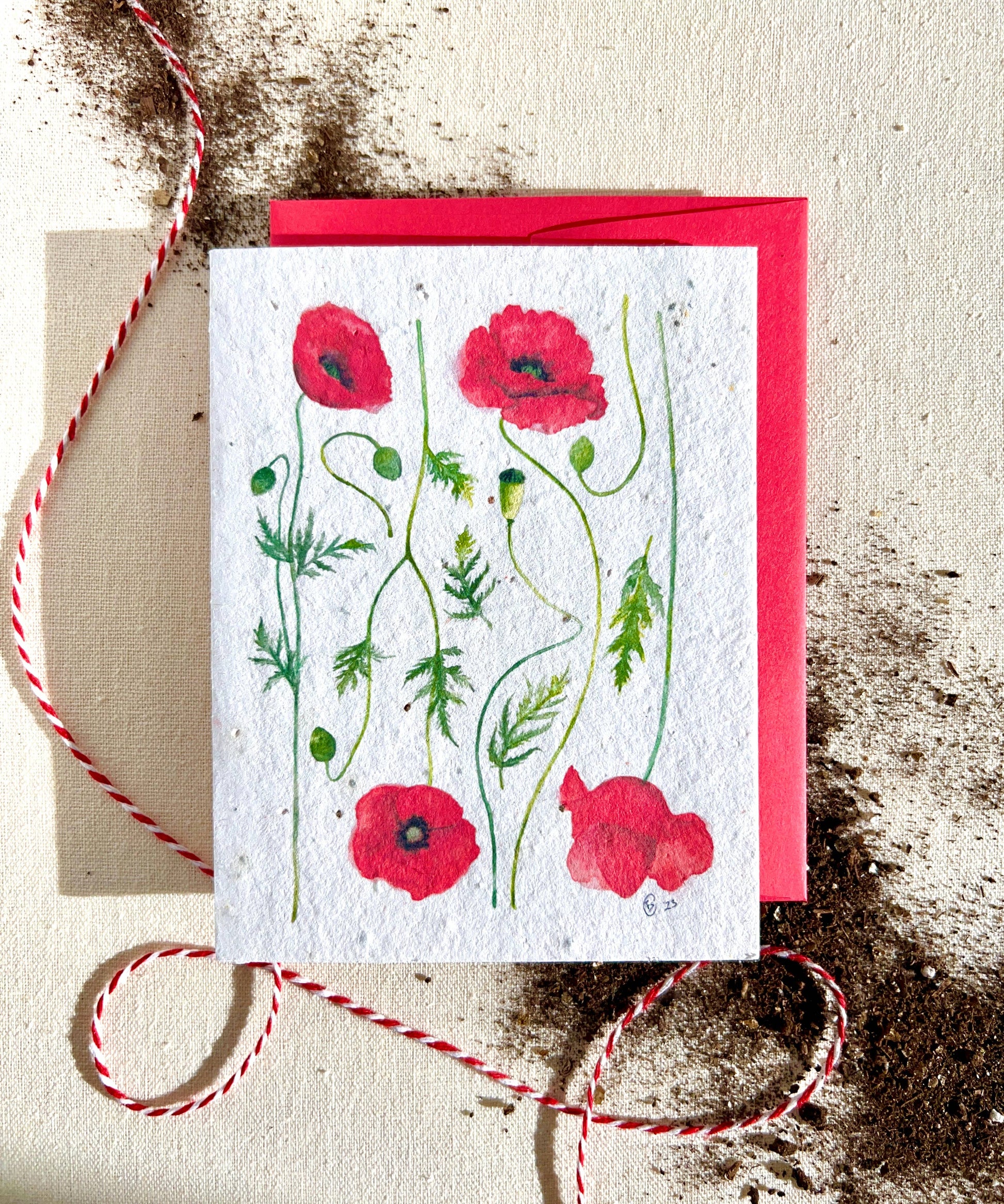 Beyond-sustainable cards for the nature lovers in your life! Share love and wildflowers in one little card. Flowers painted on the card match the seeds embedded in the paper!