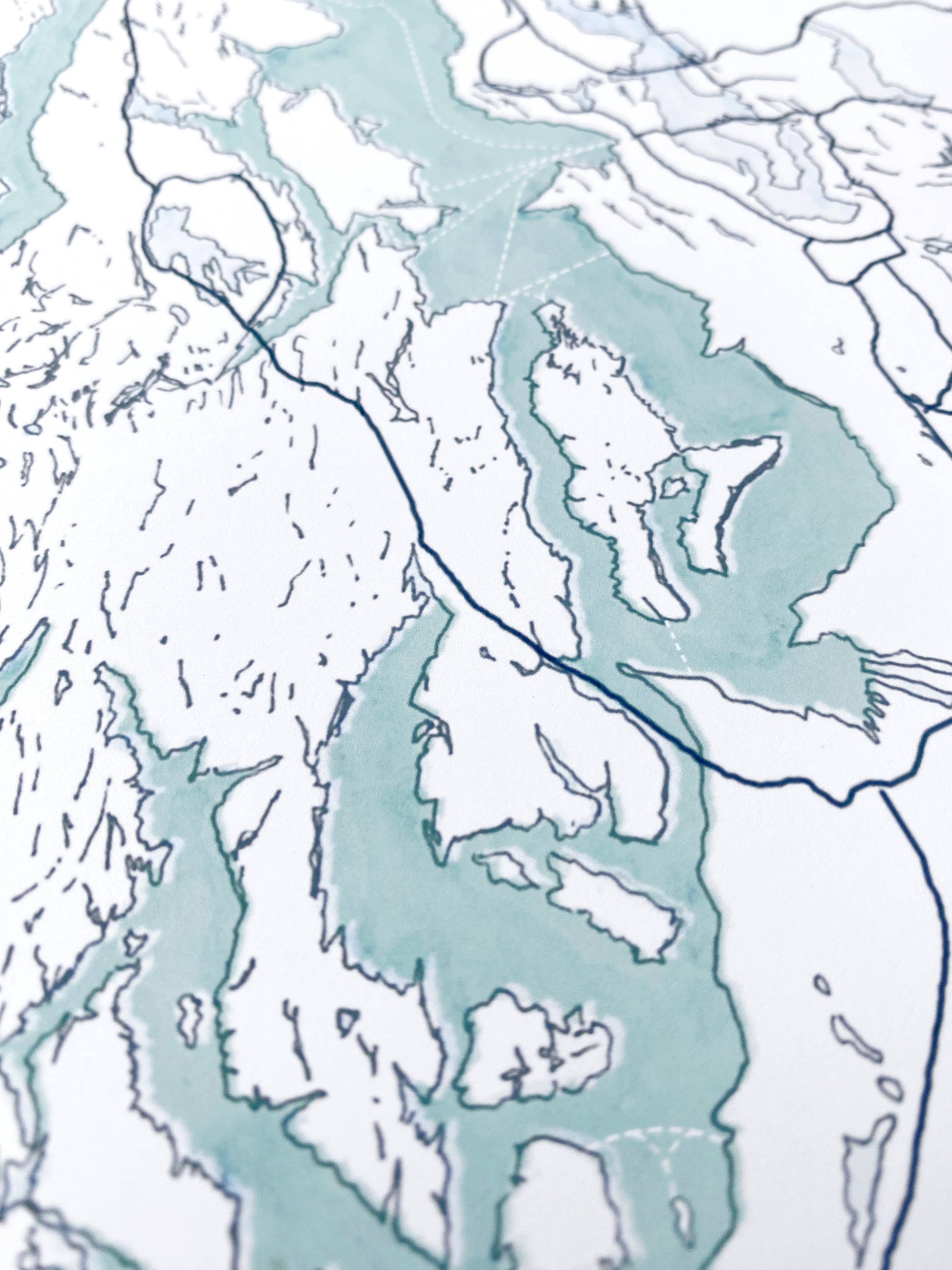 Puget Sound Topo Watercolor Map 13 x 19 ART PRINT
