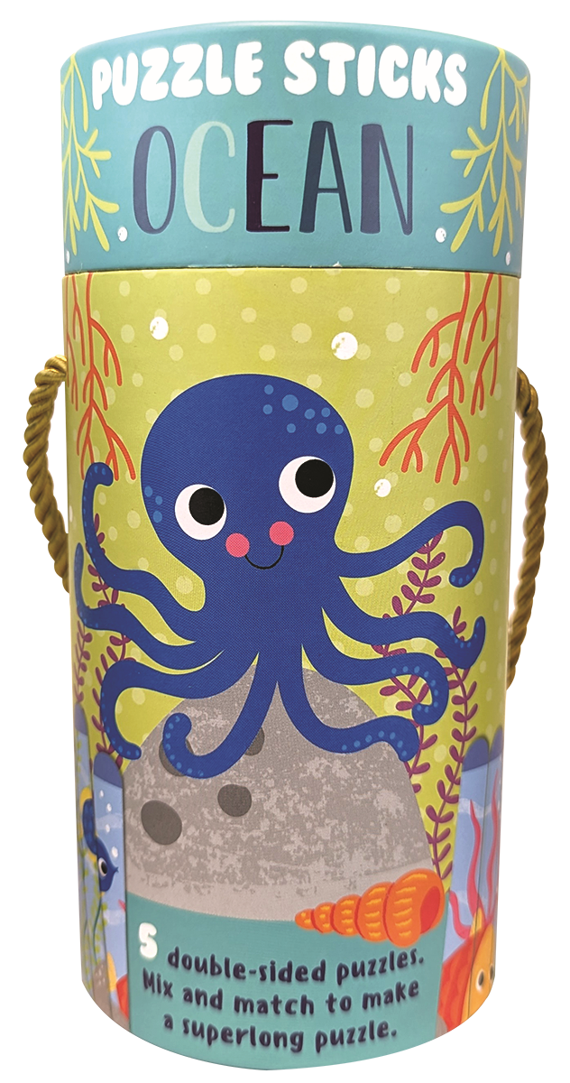 Puzzle Sticks: Sort the sturdy sticks by the colored tips, then arrange them in the correct order to make five double-sided puzzles. The handy tubes make storage and travel super easy.