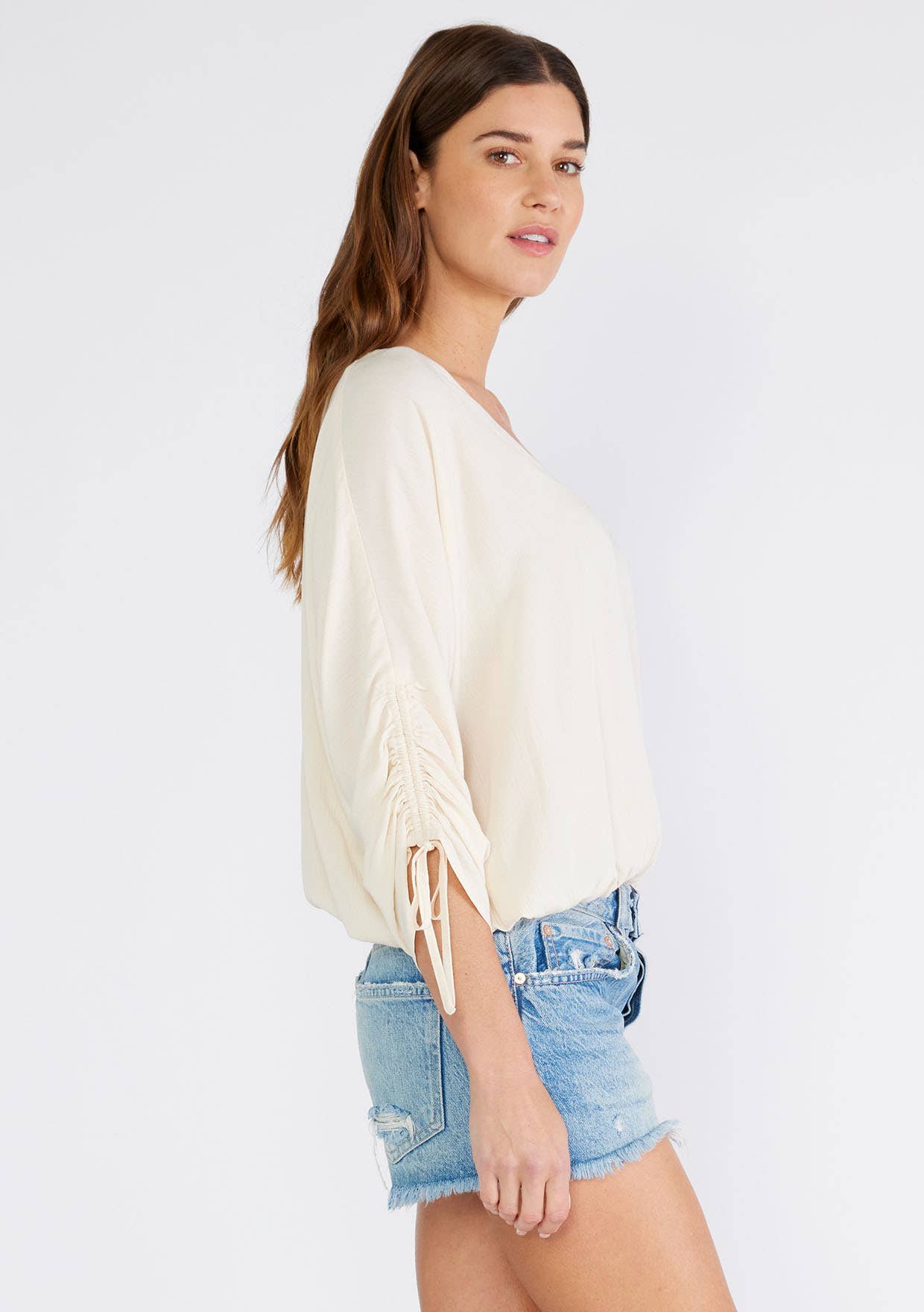 Ruched Dolman Sleeve Button Front Blouse