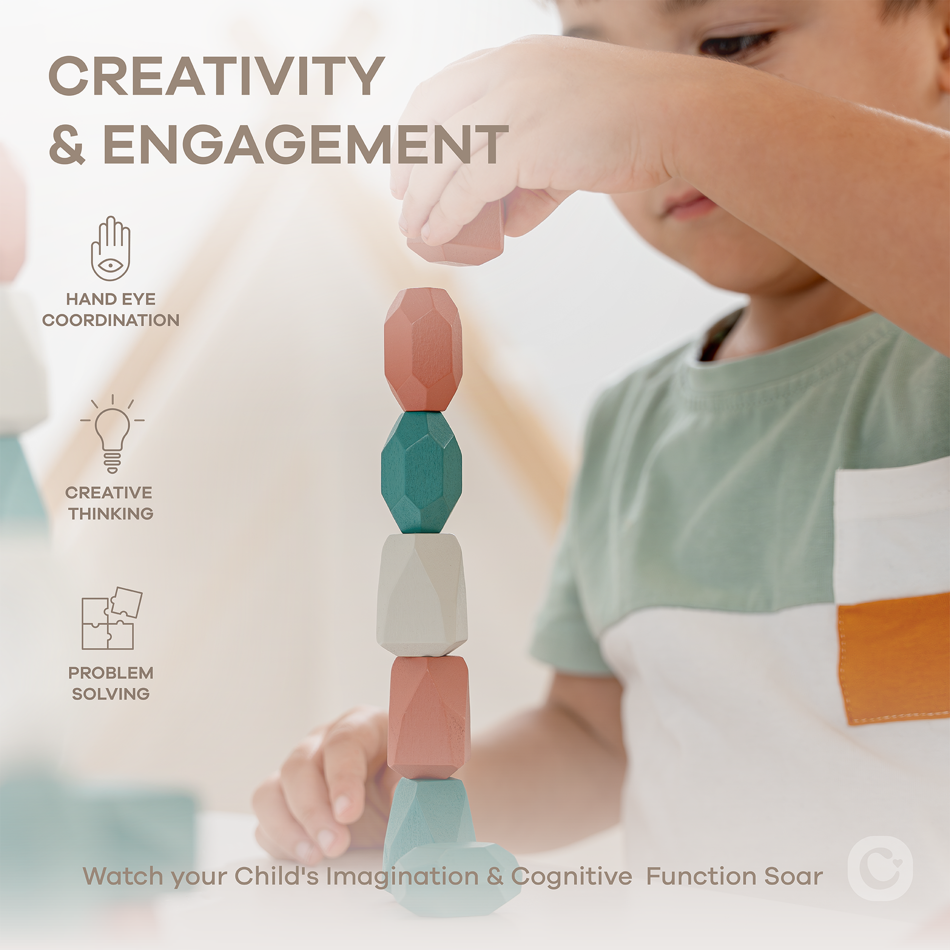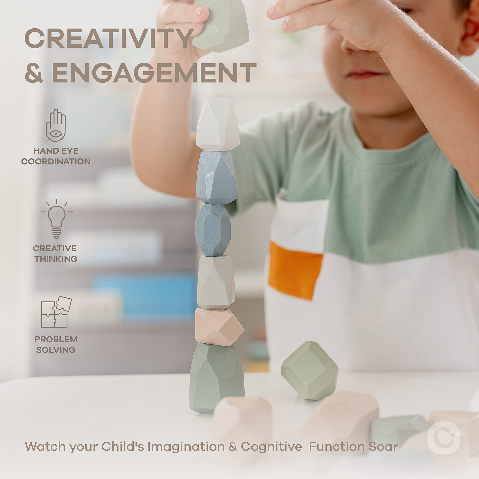 Stacking Rocks, 36 pcs Wooden Stacking Stones by Comfy Cubs