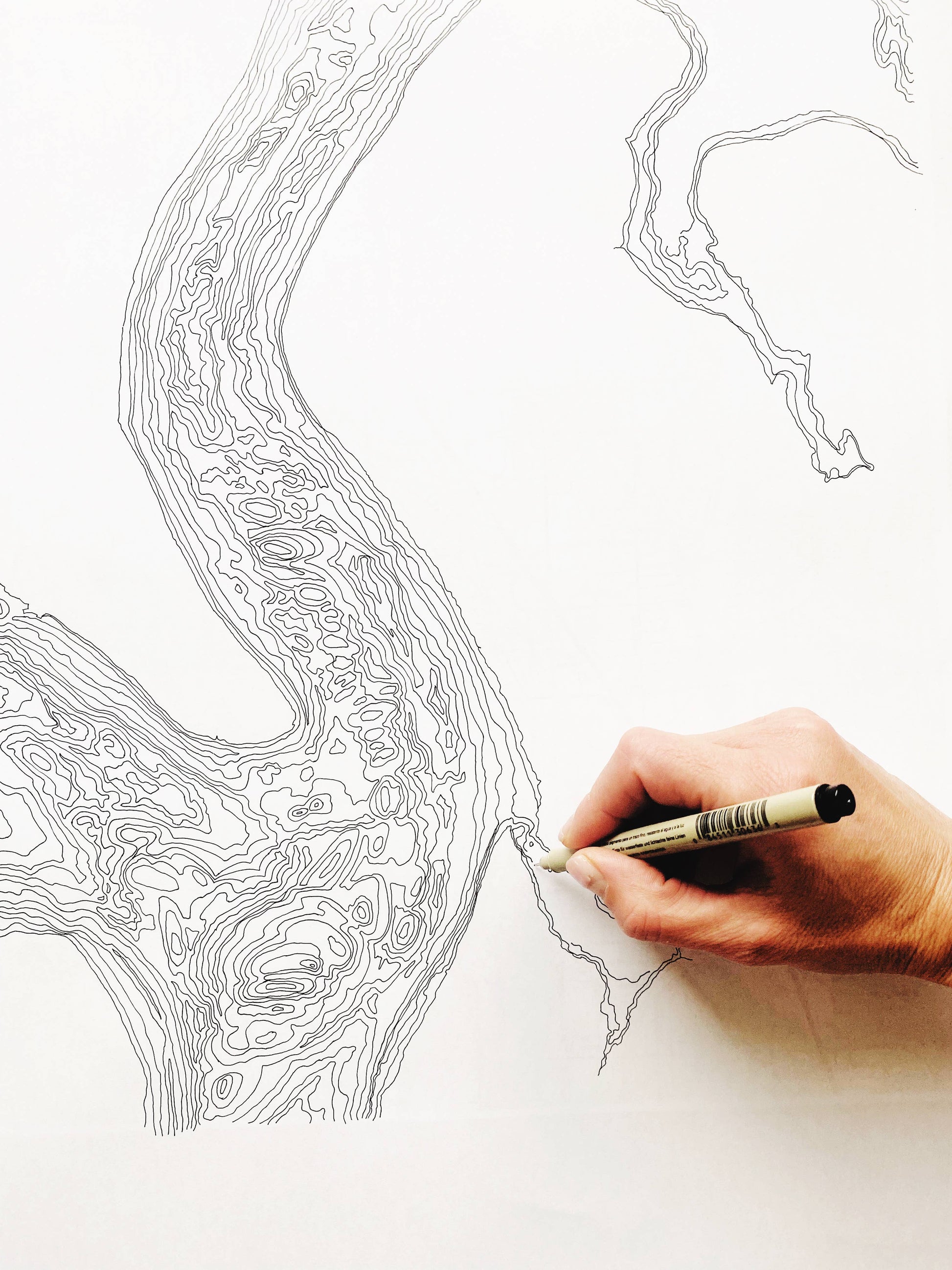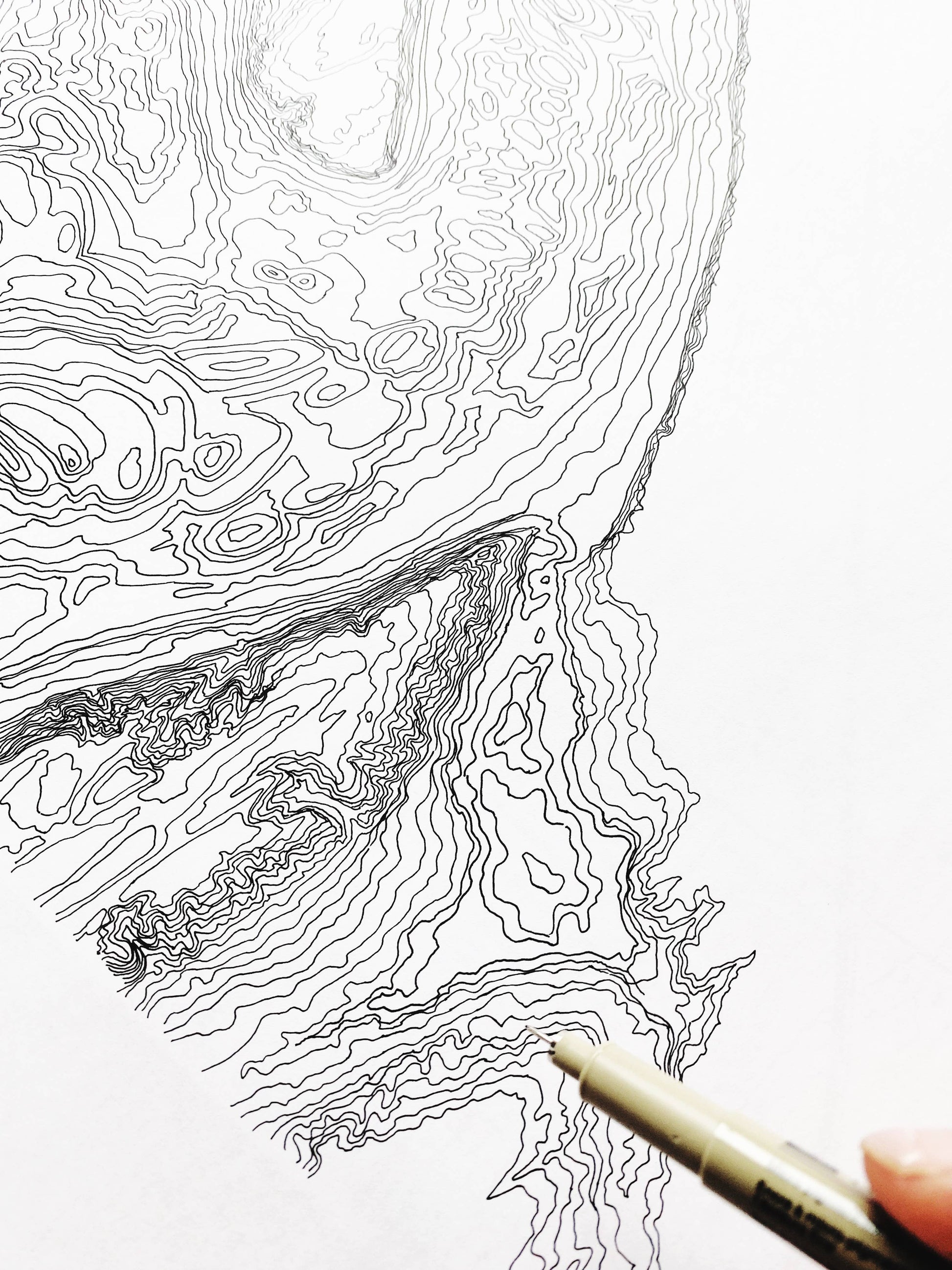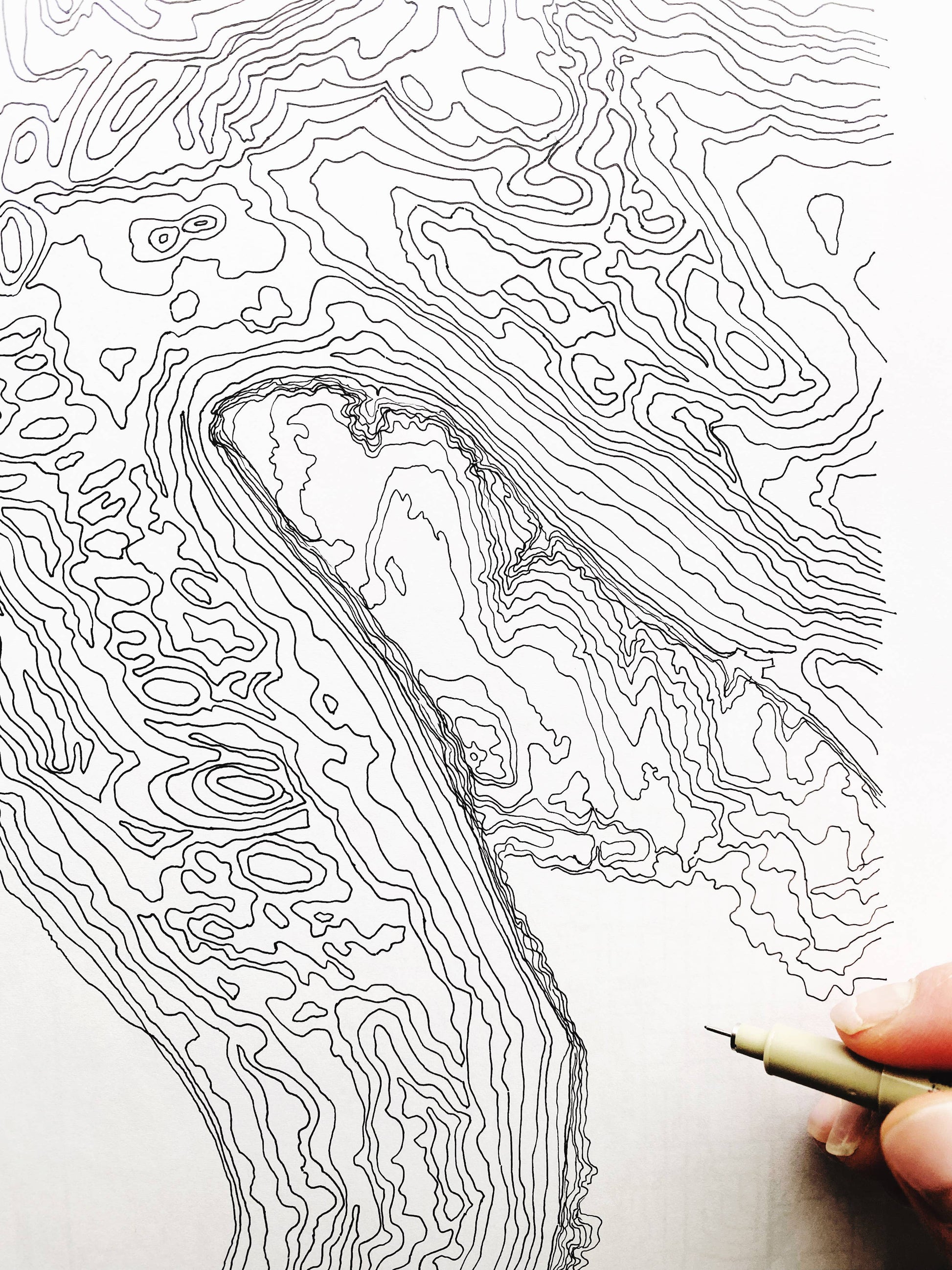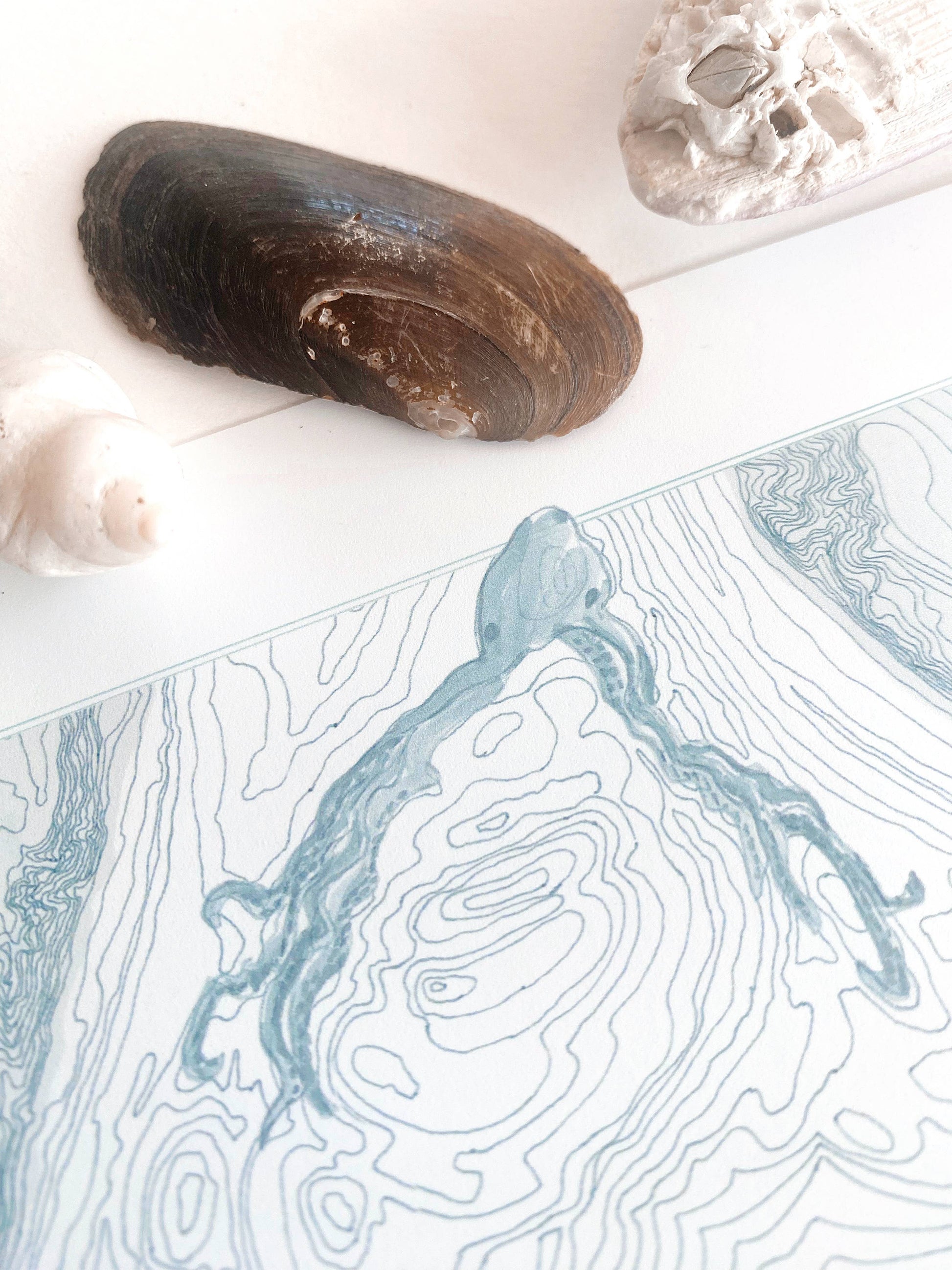 This is a PRINT of my hand-drawn topographic hachures and bathymetric lines in greens to match Maps of: Whidbey, San Juans, South Sound, Vashon, Anacortes...