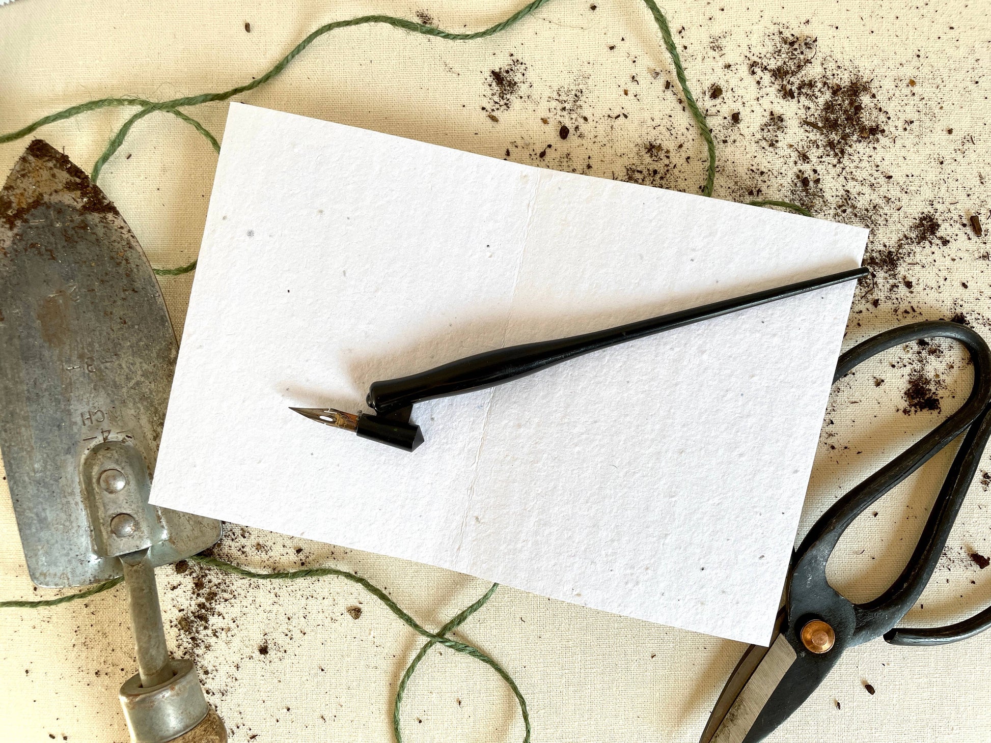 PLANTING INSTRUCTIONS: Simply tear up the card after use, soak the paper in water overnight, plant it in the garden, and watch your herb garden grow! (Planting instructions on back of card.)