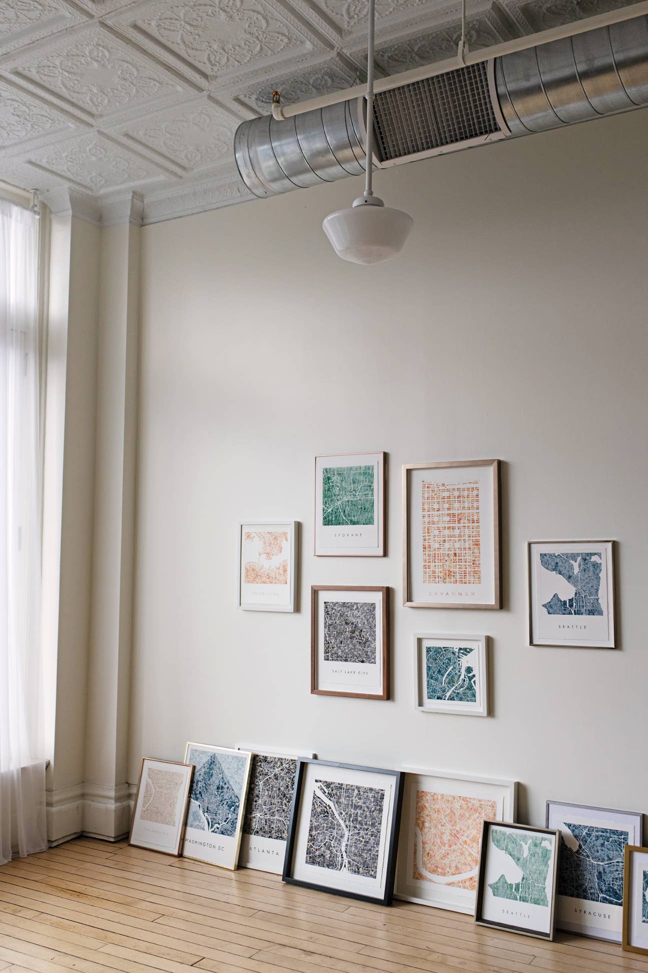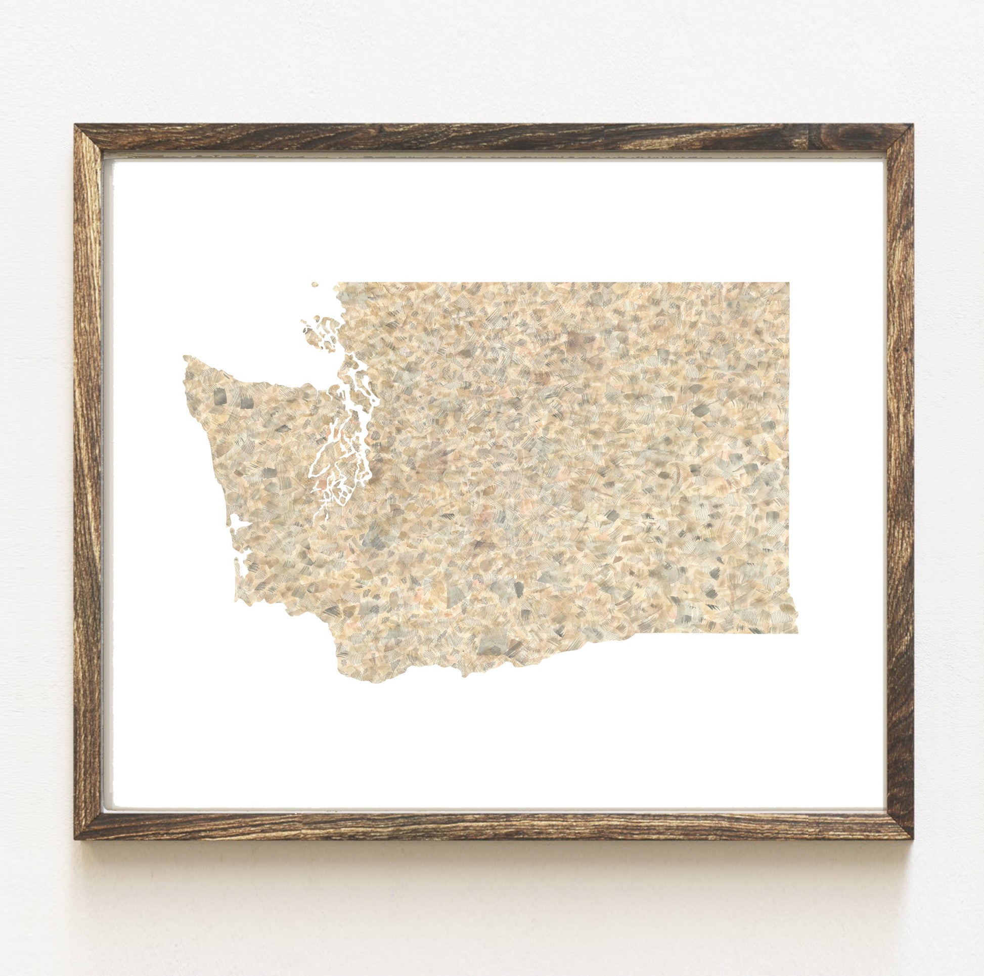 This is a PRINT from my "Urban Fabrics" Map Collection. The Washington state map is silhouetted in one of my 6 textural paintings - a layering of many hand-painted and drawn marks in watercolor, handmade pigment and graphite. My hand-drawn map lines are turned white over one of my 6 textural paintings. Your choice!