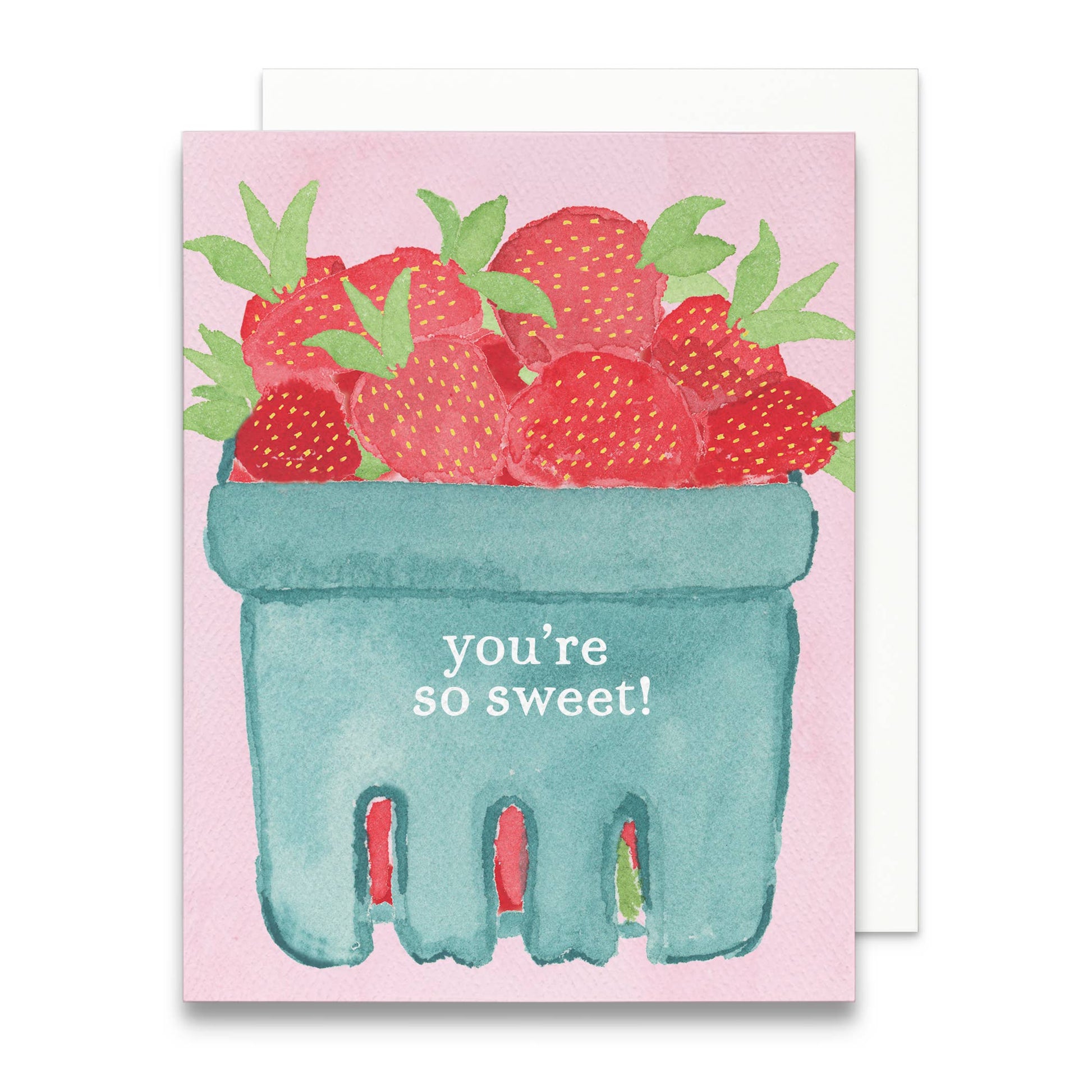 Say thank you with a little sweetness! This charming thank you greeting card features a hand-painted crate of red strawberries and the phrase “you’re so sweet." Created from original watercolor artwork, it’s a fresh and cheerful way to send gratitude or a thoughtful note.